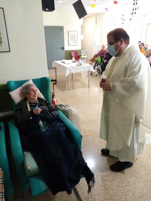 Avui ens ha visitat el mossèn Josep i ha realitzat l'eucaristia, dedicada a Maria Auxiliadora.