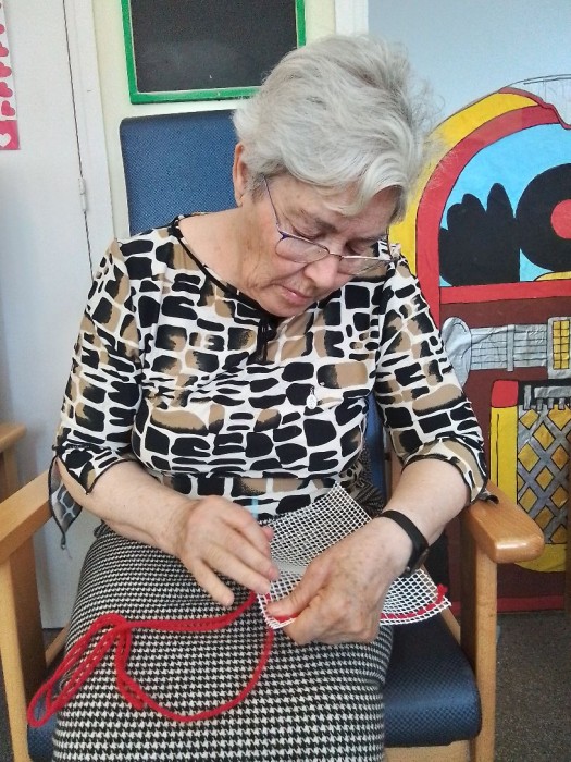 Pintando dibujos de primavera, ejercicios cognitivos y tejido.
