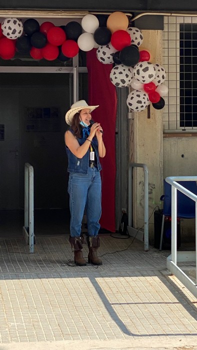 Este viernes celebramos la fiesta con ambientación del Oeste, con vaqueros y vaqueras, realizamos actividades conjuntamente con las familias y con los niños de infantil del colegio Jaume Balmes del Prat.
