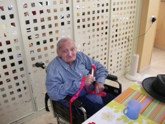 No se que passa quan es sent música a l'Onada de la Ràpita, que els peus de molts dels nostres residents pareix que vagin sols. Ara els més assistits a part del treball que es fa amb ells mitjançant la música també ho combinem amb la mobilitat. Ens vam ajudar d'unes cintes de colors que havien de moure al ritme de la música, va ser molt divertit. Algún se'l va possar al coll i li va recordar quan es possava corbata, perque´intentava fer-se el nus!!!