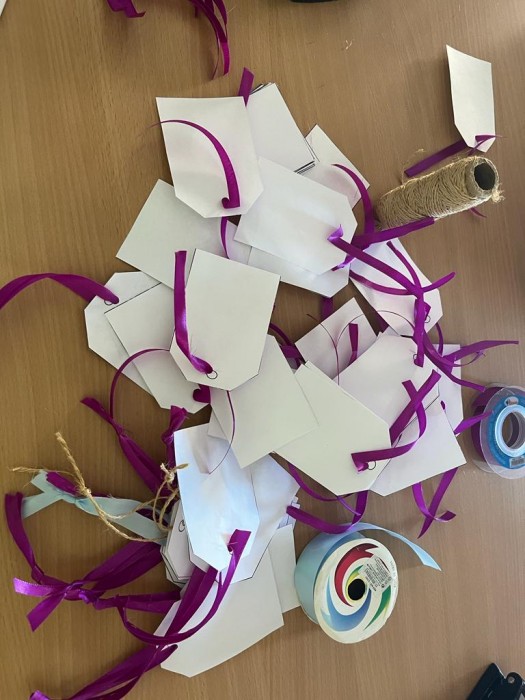 Motricitat fina creant les etiquetes perquè cada resident posi el seu desig.