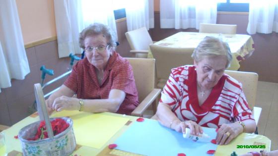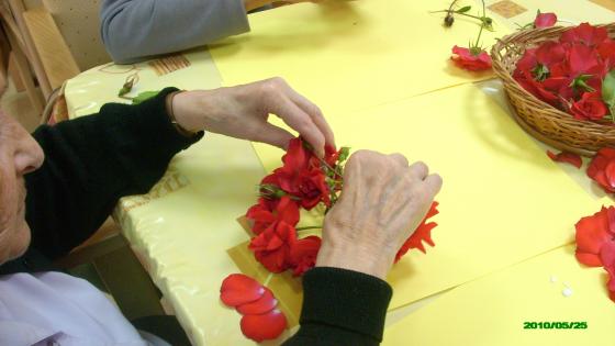 Aprofitant que tenim un jardí amb moltes roses vermelles, la setmana passada vam realitzar un taller on els avis enganxaven els pètals d'aquestes roses fent diferents dibuixos lliures a les cartulines. Els hi va agradar molt i van deixar lliure la seva creativitat. Visca la primavera!!!