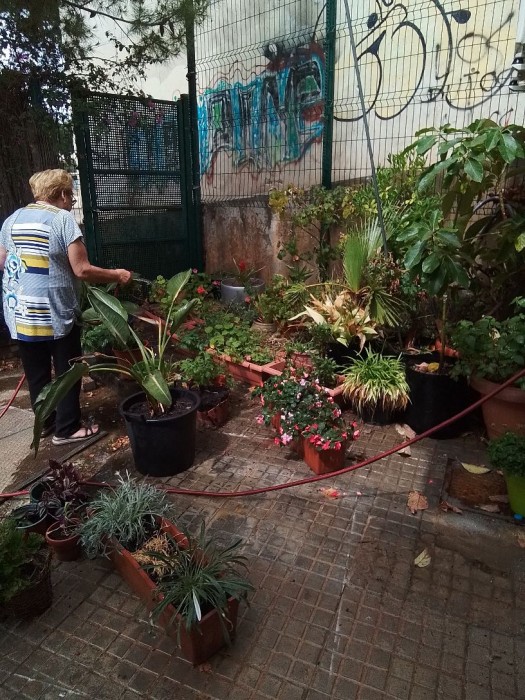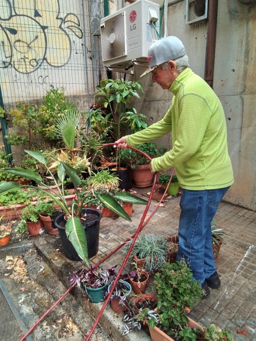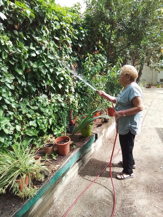 Elena y Juan ayudando con los cuidados del jardín.
