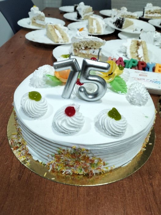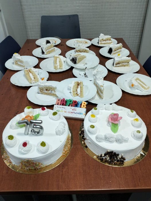 Avui la sra. CArmen fa 75 anys i ens ha convidat a un pastís deliciós!