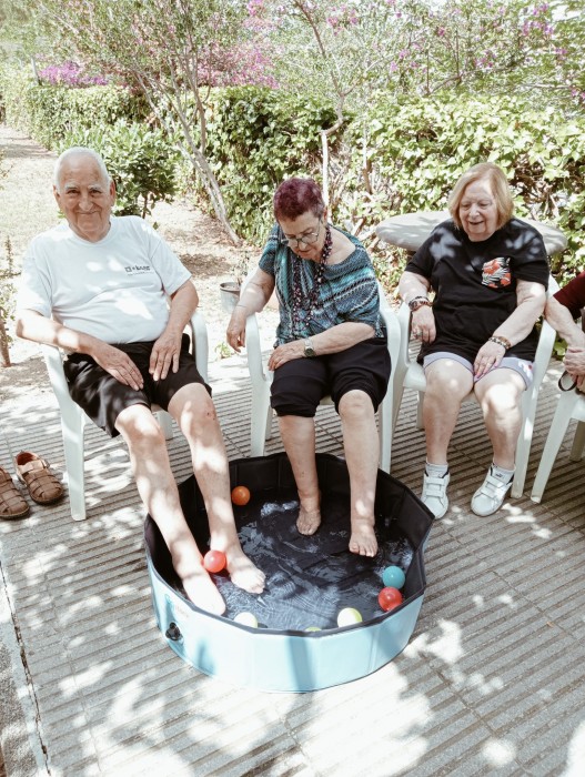 Ahir en el centre de dia, els usuaris van poder gaudir de diverses activitats. Alguns van fer treballs cognitius i altres van sortir al jardí a remullar-se els peus a la piscina mentre feien exercicis de coordinació.