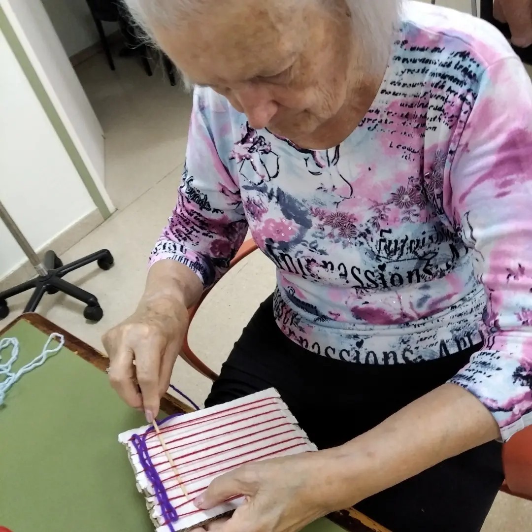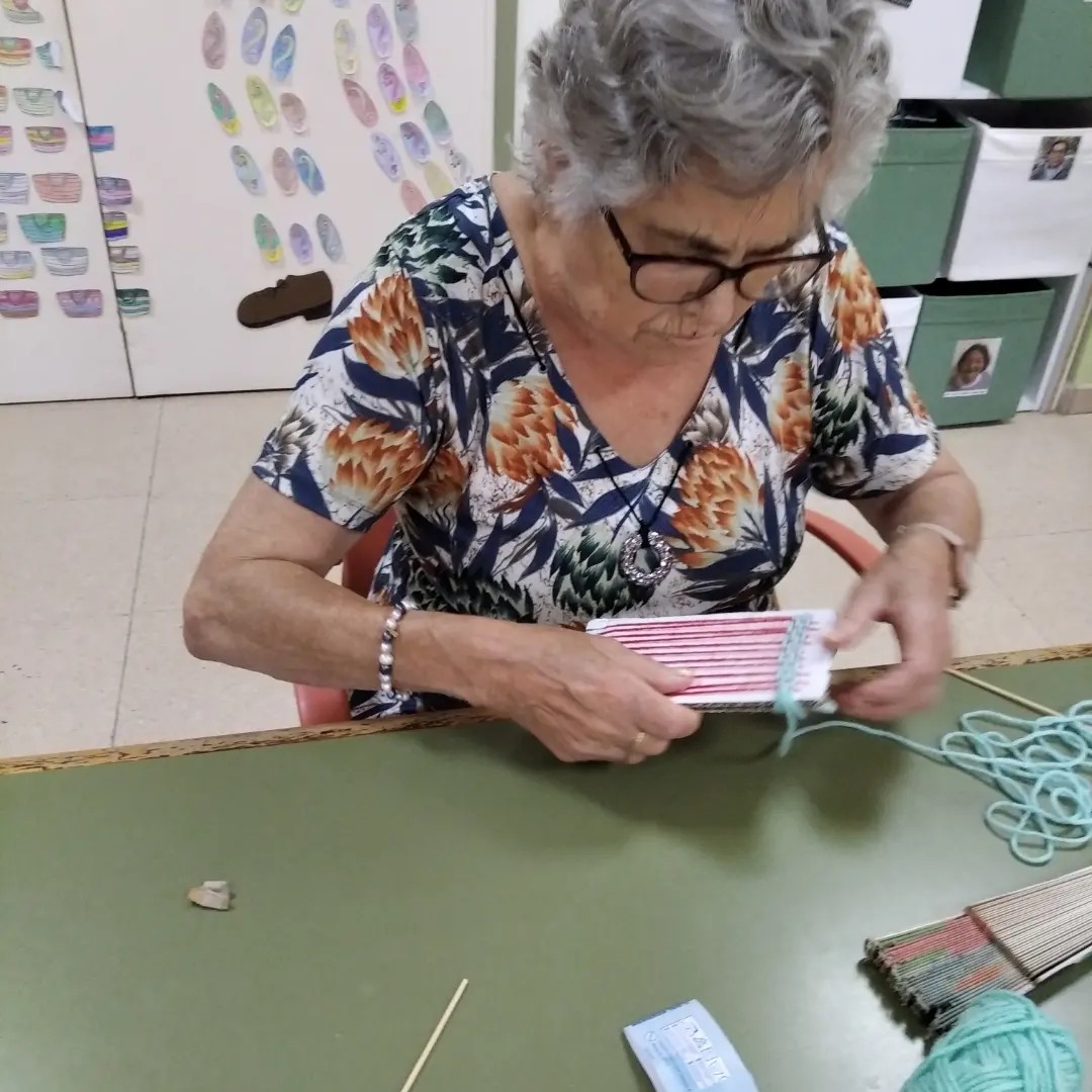 Ahir al taller de manualitats hem realitzat a fer tapissos, hi tenen molta traça!