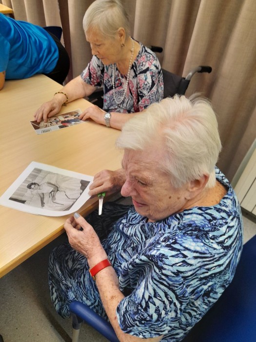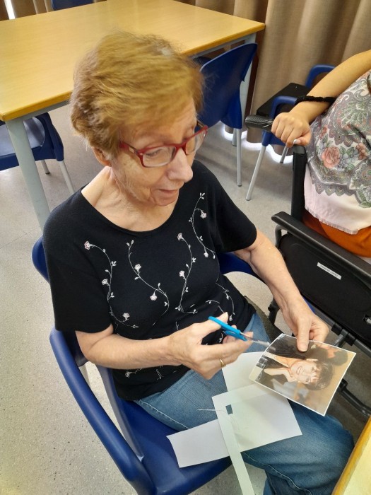 Observant, comentant I retallant les fotos de Dora, l'àvia protagonista de aquest mes.