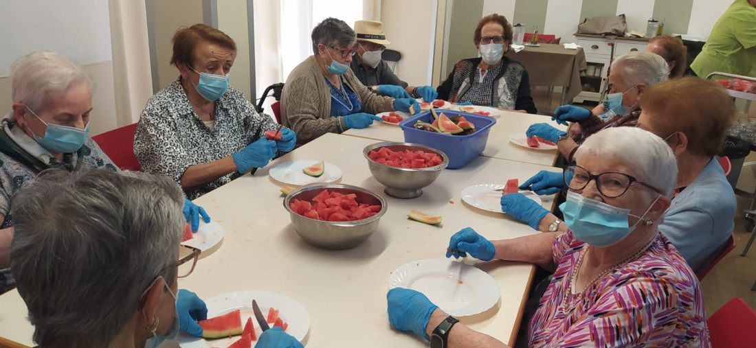 A casa nostra som molt fruiters... no perdem l'oportunitat d'ajuda a la cuina a fer bocinets de Síndria pels companys de la casa!