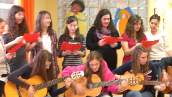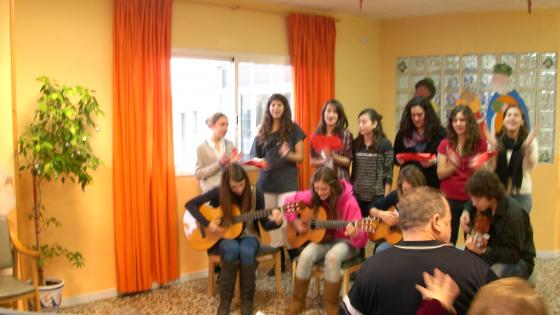 Avui ha sigut una diada molt especial. Hem tingut la visita de l'escola de les Teresianes. Alumnes de 12 i 13 anys ens han deleitat amb Nadales acompanyades del so de les guitarres espanyoles.AL finalitzar hem esmorçat tots plegats coca amb torró de xocolata. Han estat unes horetes molt agradables. Finalment ens han donat una felicitació feta pels alumnes.