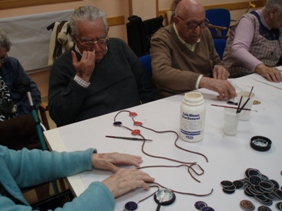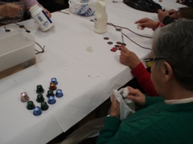 Amb motiu de La Marató de TV3, a Riudoms hem fet uns collarets amb les capsules de Nespresso. Per poder realitzar-los, primer hem de netejar les capsules i deixar-les ben seques, després les hem d'aplastar i finalment, amb molt de gust i imaginació les anem enganxant per poder realitzar el collaret. S'ha de dir que tenim uns grans creadors al centre que han fet vertaderes maravelles!