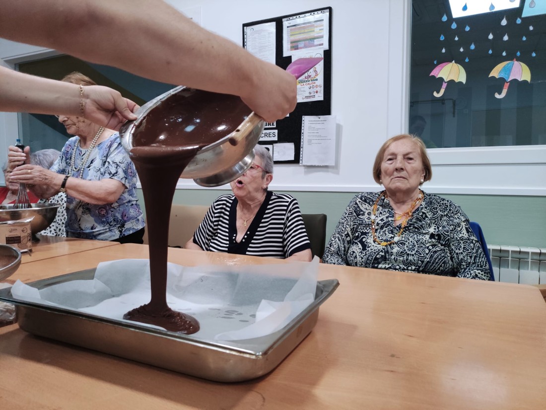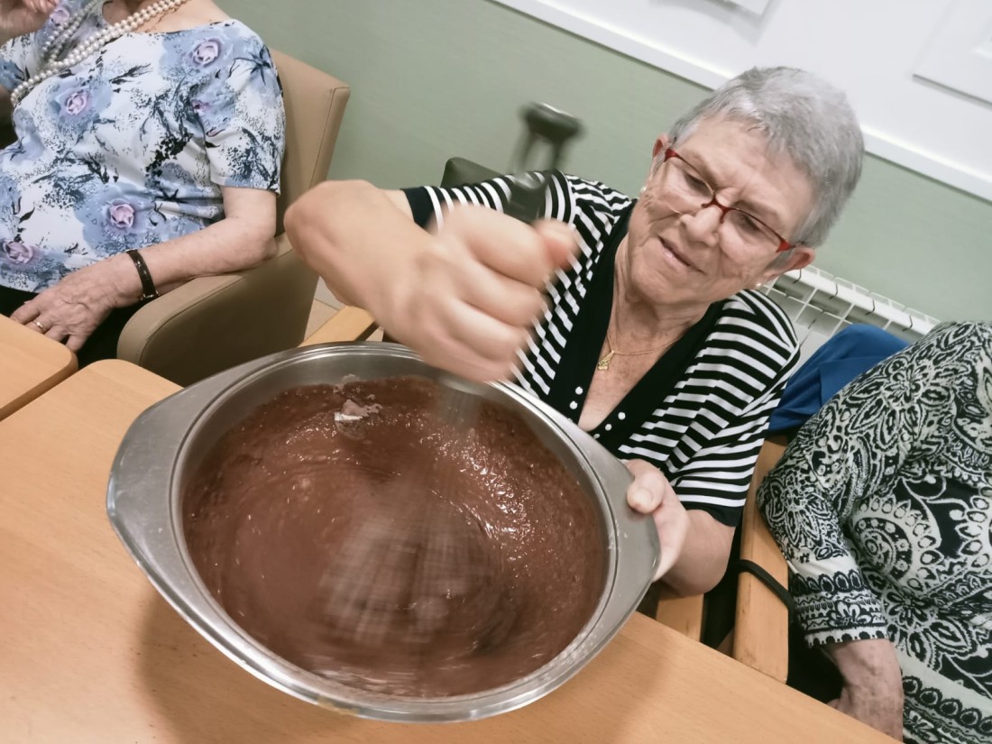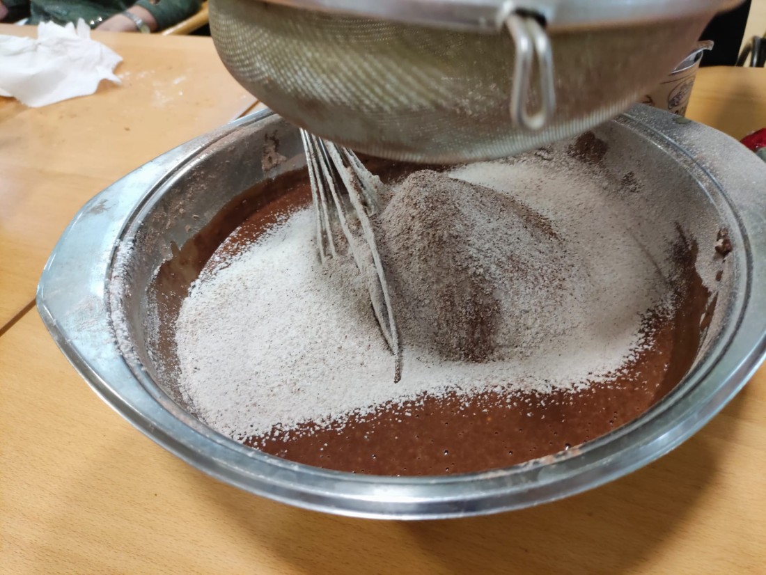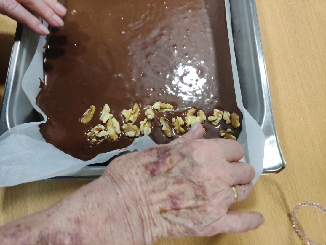 Hem realitzat un boníssim pastís de tres xocolates amb nous, que podrem degustar tots junts avui a la tarda per berenar.