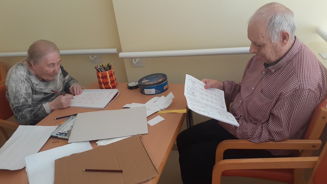 Avui hem traballat amb les tisores i el paper daurat preparant l'aniversari del centre, algun altre treballava amb les mats!!!