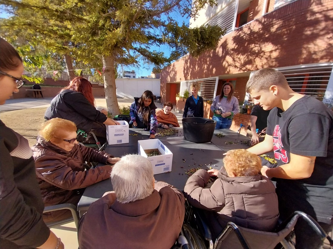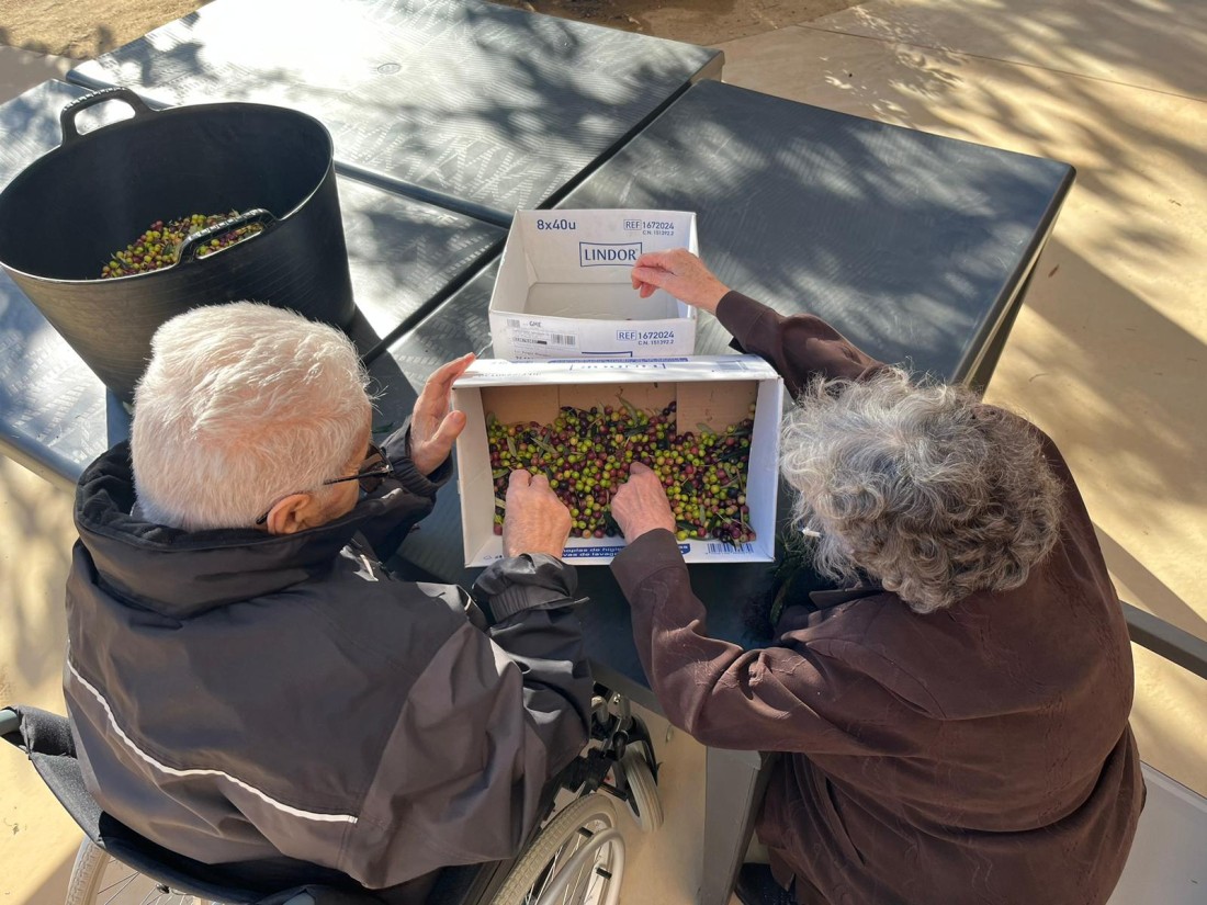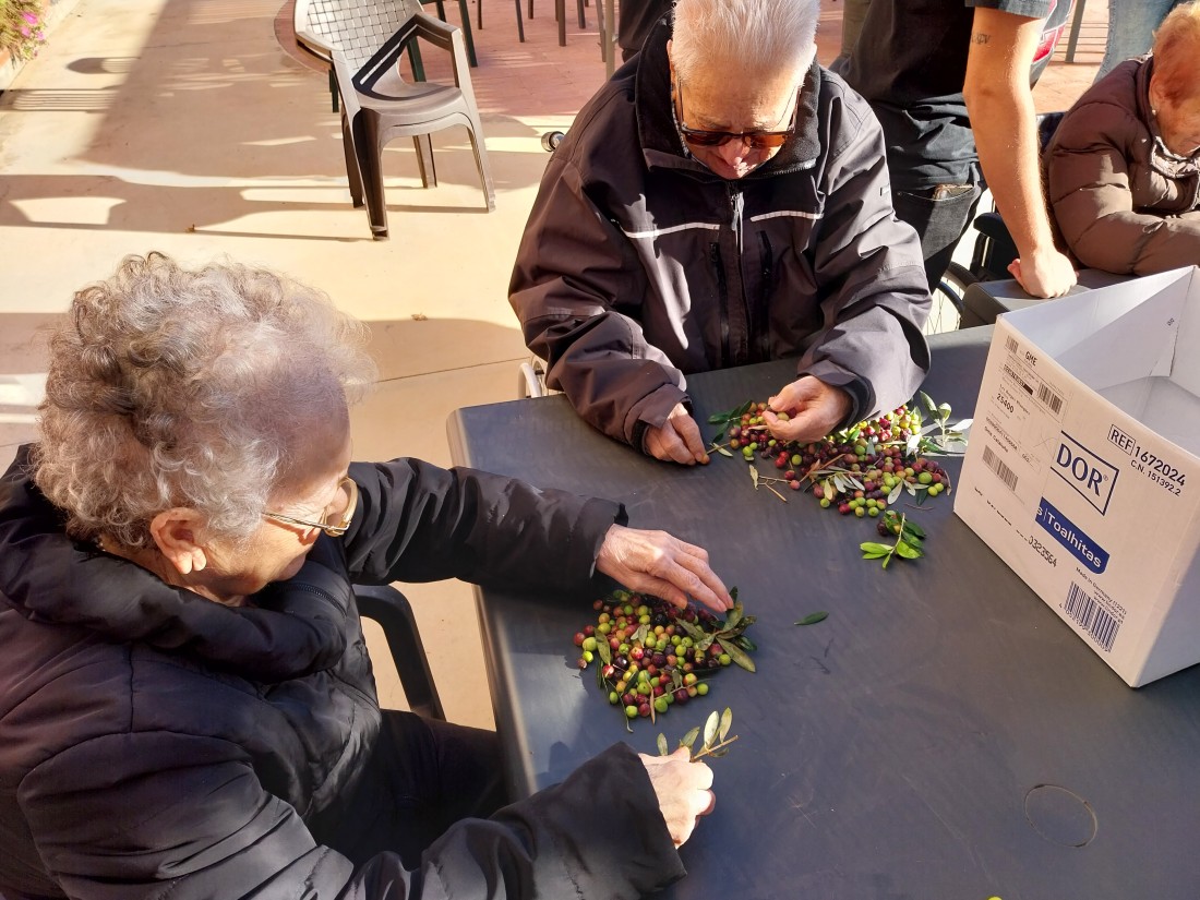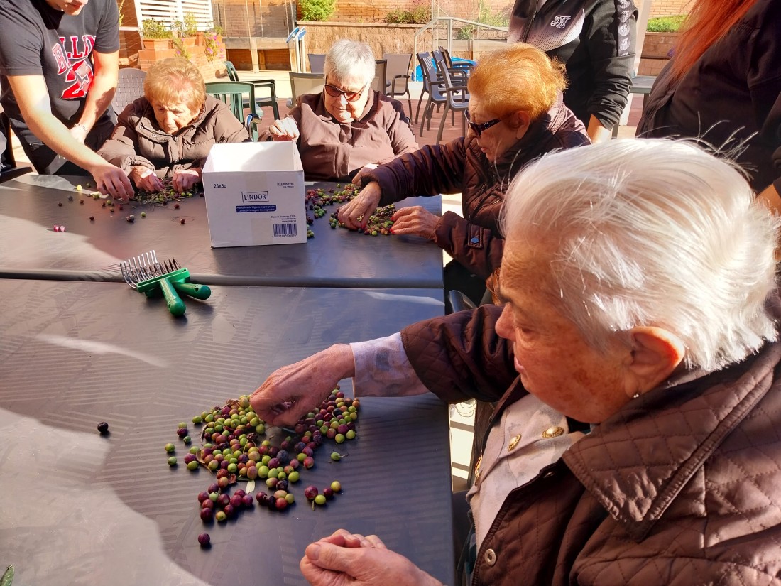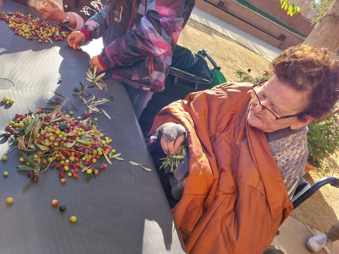 Desprès de collir les olives, toca separar l'oliva de les fulles que han caigut... i així ho vam fer!