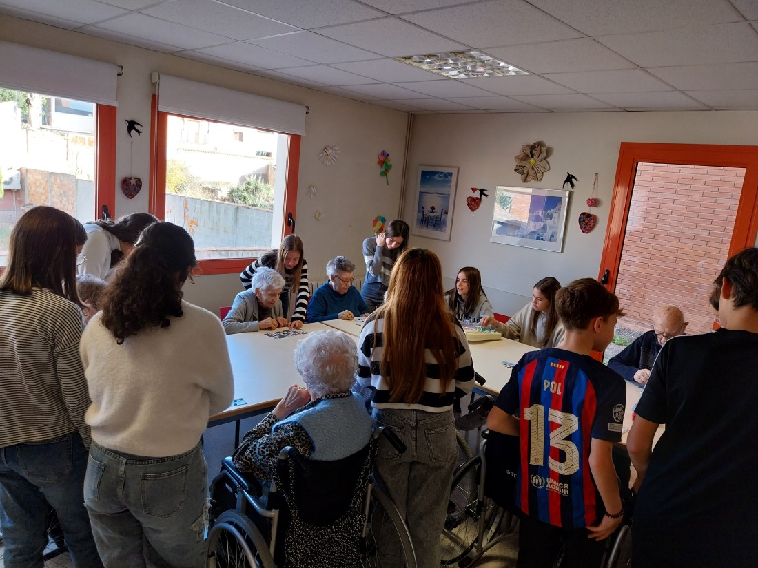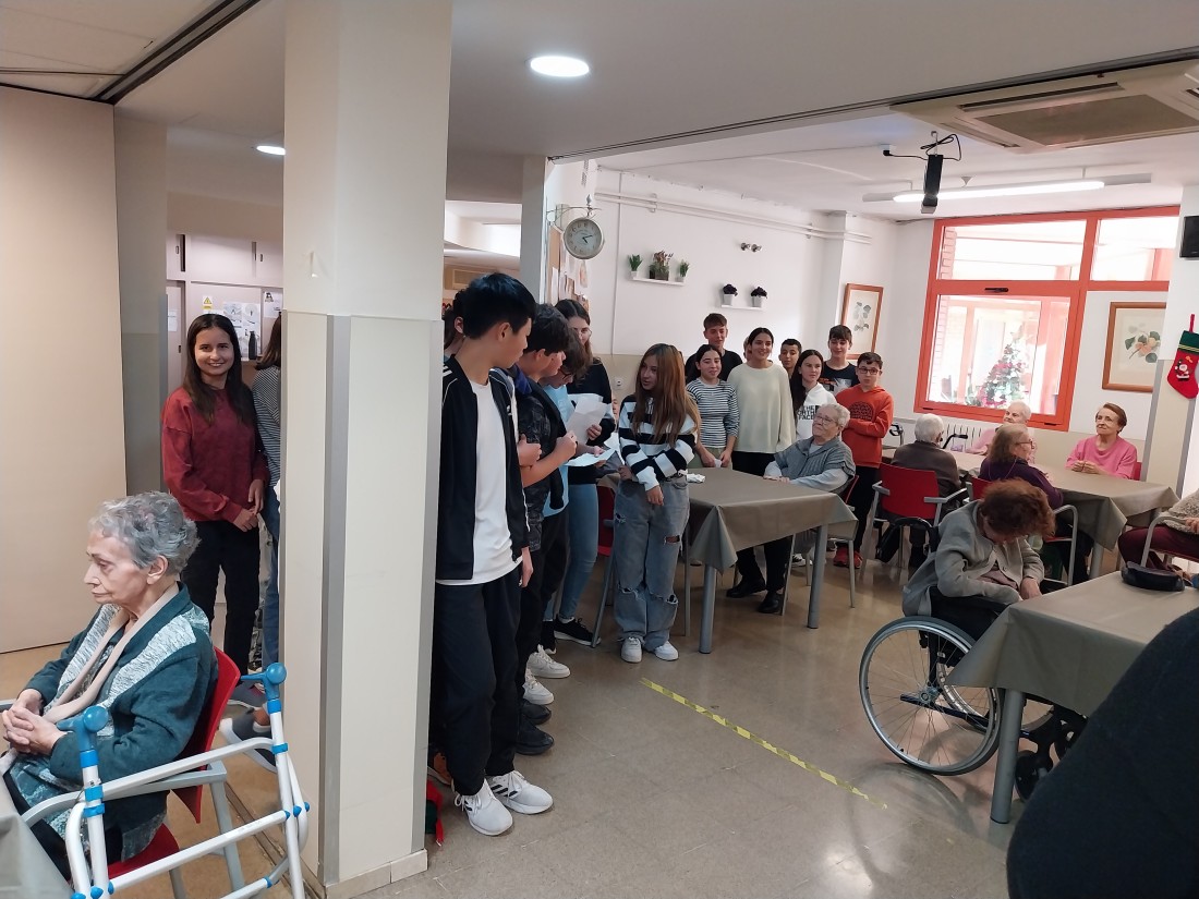 Avui hem tingut una visita molt especial! I es que en hn vingut a desitjar Bones Festes els i les alumnes de 2n de la ESO del Col·legi Mare de Déu de Montserrat! Amb ells hem jugat a jocs de taula i ens ajudat a decorar la casa! Hem gaudit molt també de les nadales que ells mateixos han composat! No podíem estar més contents!!