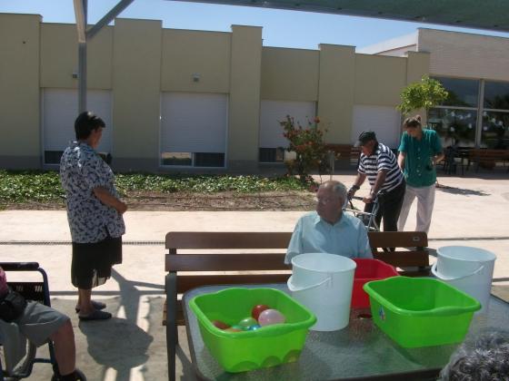 Avui hem començat les activitats refrescants a Deltebre, al jardi hem omplert diversos recipients amb aigua, posavam les mans a dins i ens refresavam els braços, el coll, la cara, les mans... després hi hem posat globus d'aigua i per parelles competiem a veure qui els trencava abans, ens passavam els globus de mans a mans, ens els tiravam, ham jugat basquet i amb l'aigua que ens ha sobrat hem regat les flors del jardí!!! Visca el bon temps!!!