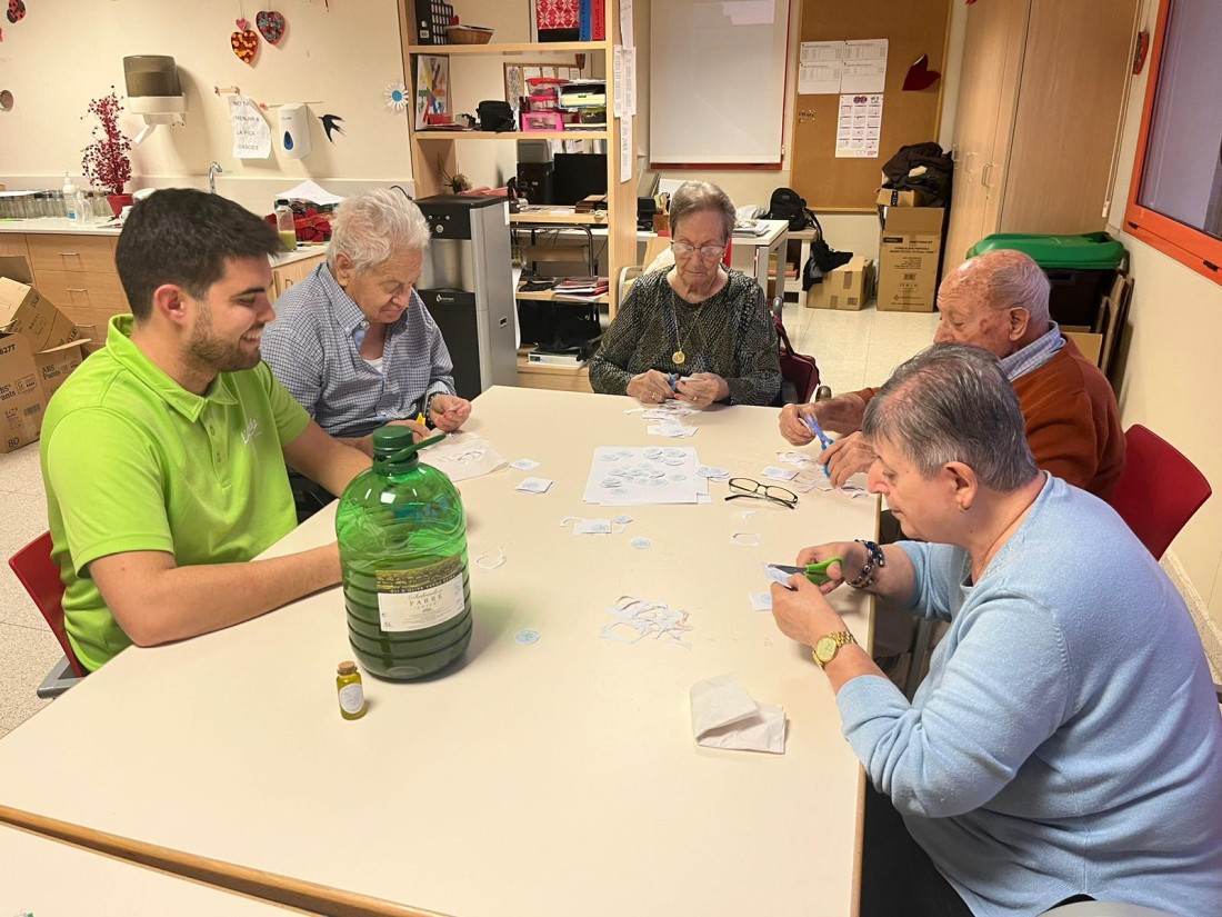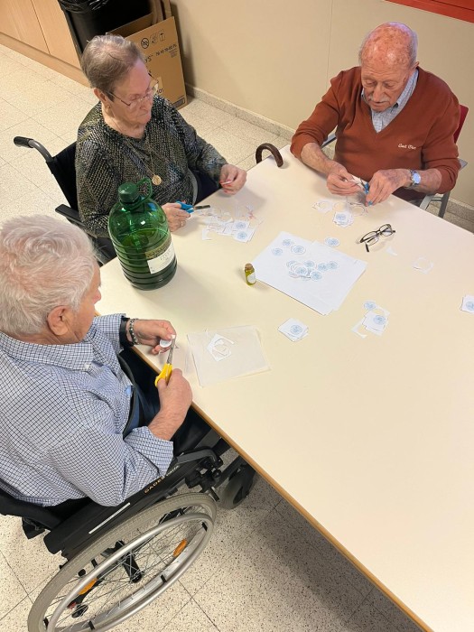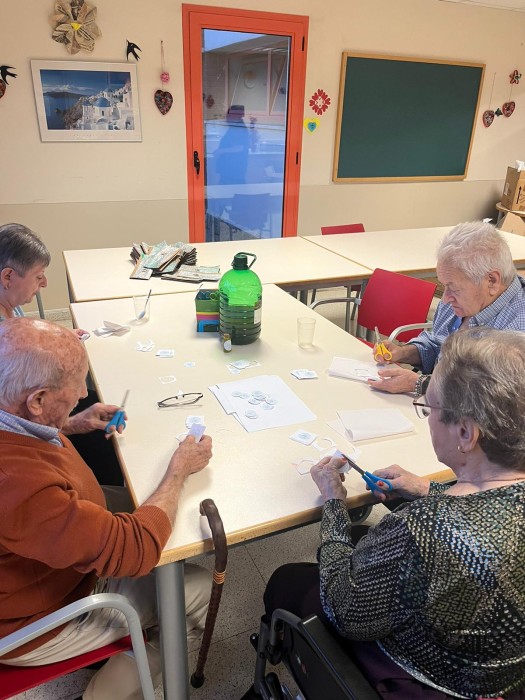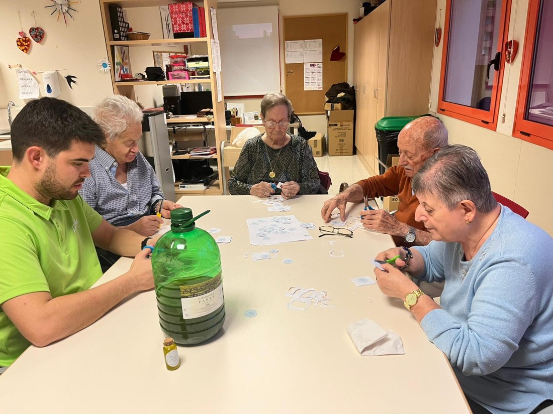 En aquestes fotos podeu veure una altra part del procés de les botelletes d'oli d'oliva de la casa! Aquí ajudàvem al Jordi a retallar les etiquetes!