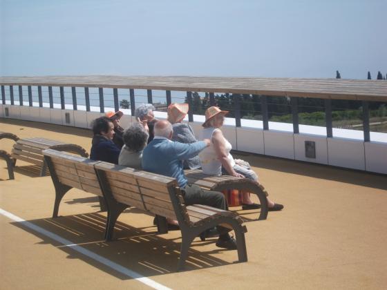 Hem anat a veure el pont de Sant Jaume i Deltebre, molts avis ens han recoirdat les peripecies que havien de fer per creuar el pont, a vegades en barcassa, nadant, amb llaut, amb barqueta... s'han emocionat al veure els grans canvis que estava tenint els seus pobles, a més de fer turisme, hem fet molt exercici ja que la rampa era molt empinada, mireu que cansatdes s'han quedat algunes... La recompensa??? Una beguda fresqueta a la voreta del riu!!!