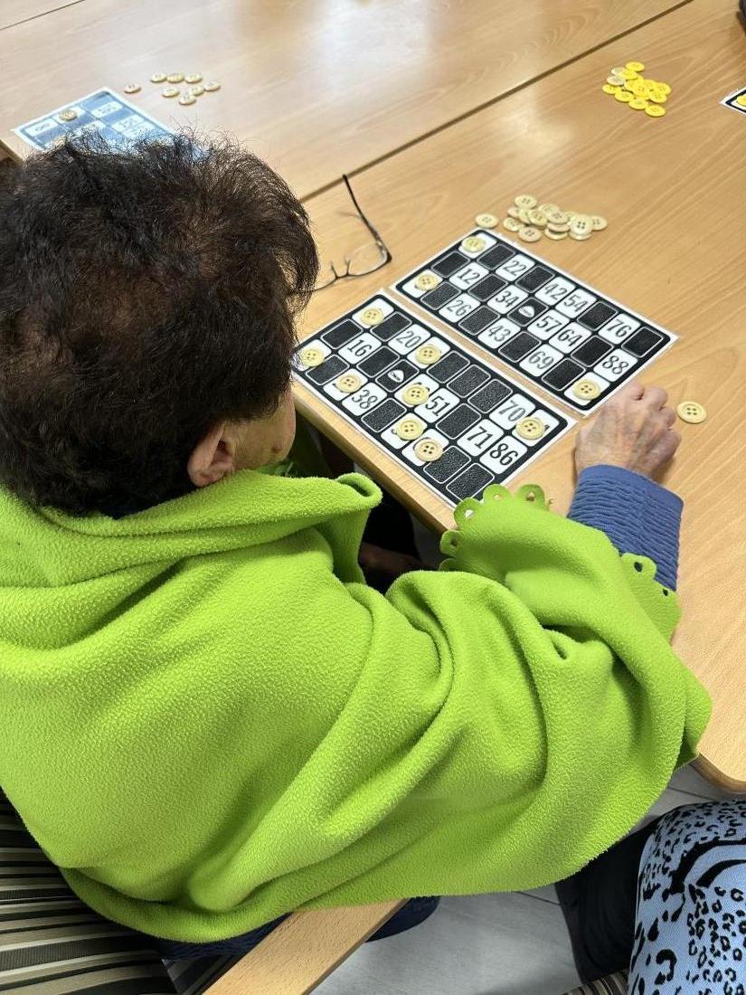 Avui com activitat després d'estar pedalant una estona al gimnàs del nostre centre hem decidit fer Bingo que ens agrada molt.