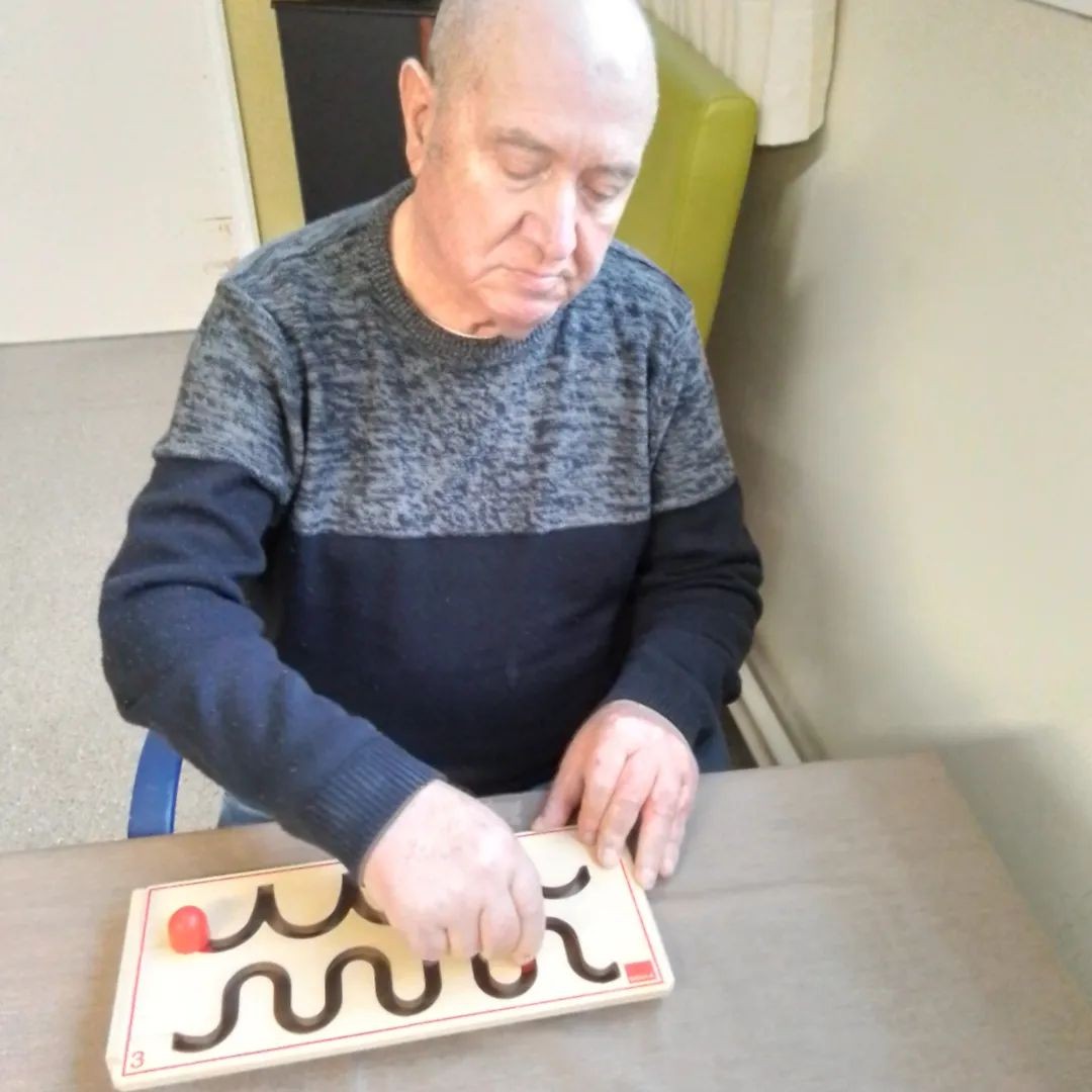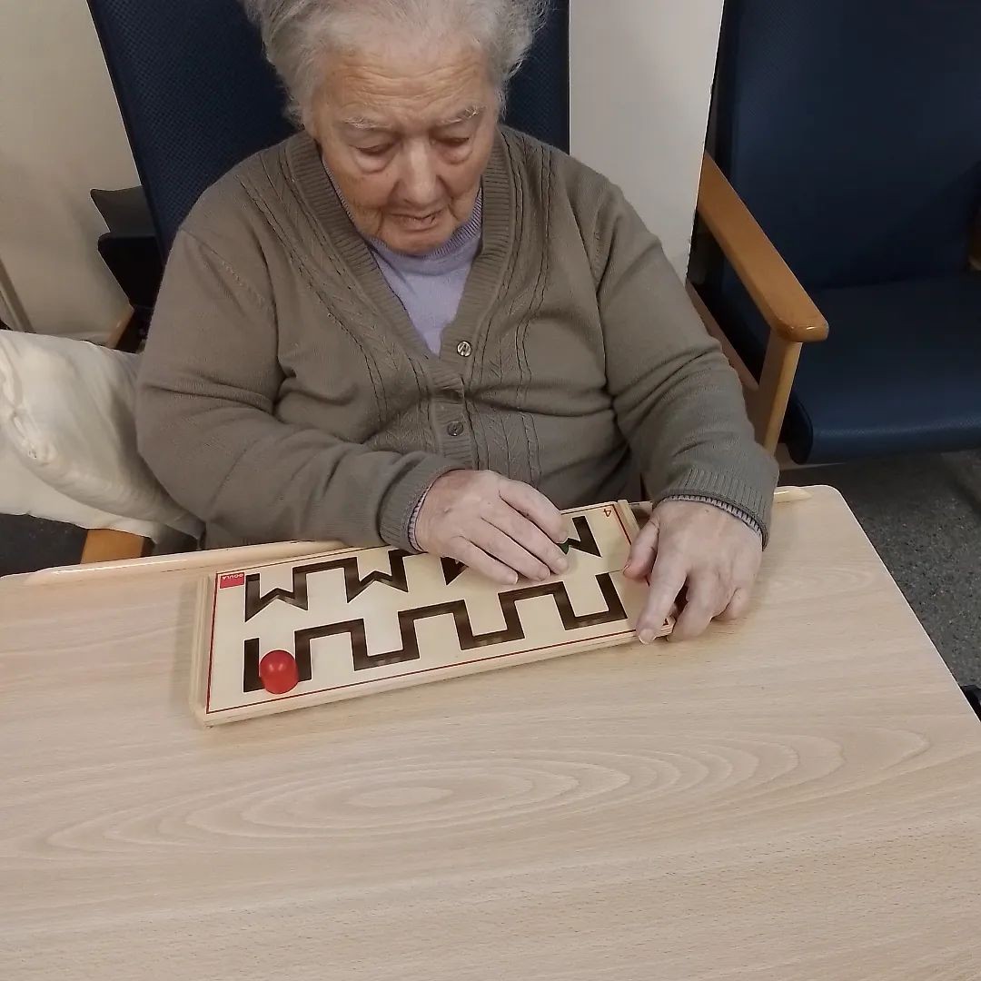 Muy concentrados y entretenidos realizando AVDs y otras actividades de su interés y gusto.