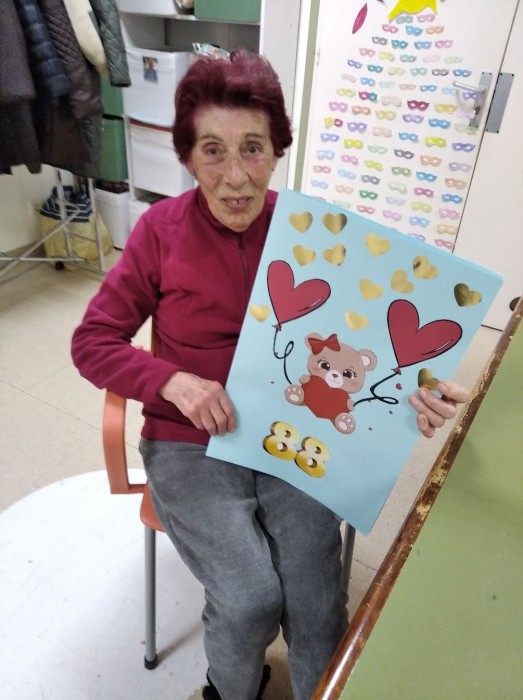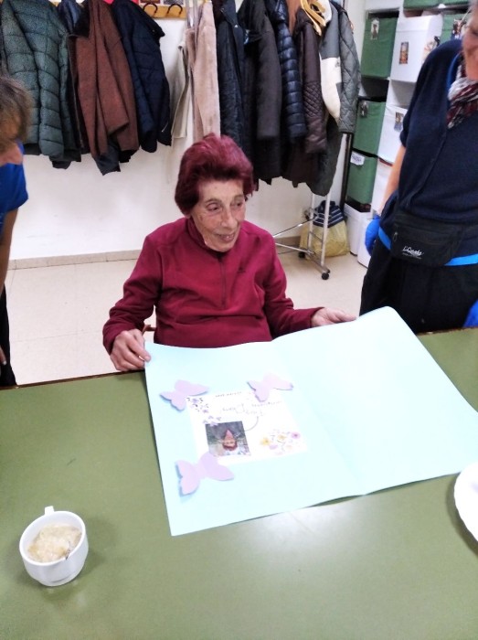Avui és l'aniversari de la Sra. Dolors, fa 88 anys, i així de contenta s'ha posat quan li hem cantat anys anys!!!