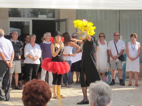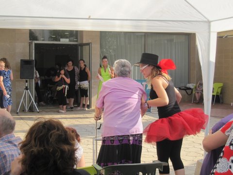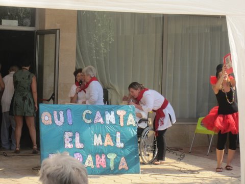 A la tarde va començar l'espectacle amb l'entrega de premis als residents més veterans. Desprès els treballadors dels centre ens vam oferir diferents correografies (waka waka i kapoeira), a continuació va tenir lloc el magnific Karoke “Qui canta el mal espanta” i per finalitzar el ball del farolet on les families i alguns residents van participar.