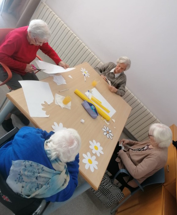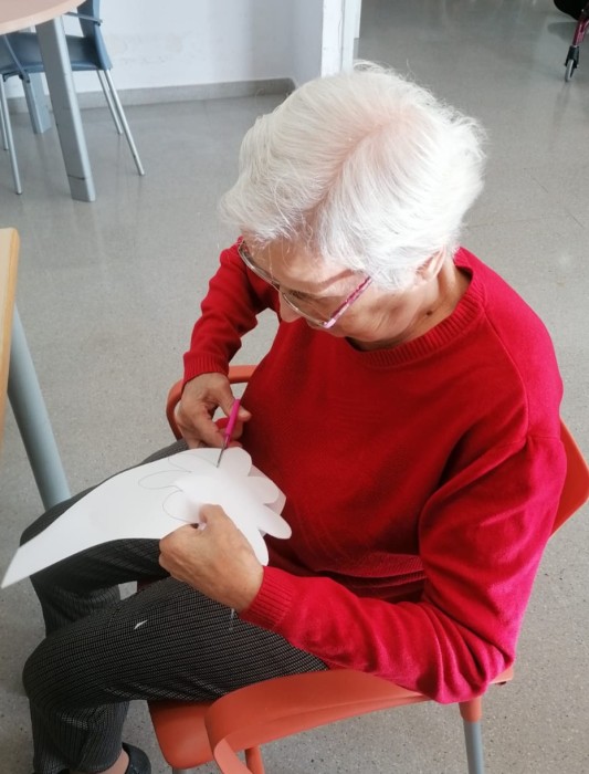 En la unitat de convivència Sagrada Família, treballant per a la decoració de la festa de Carnestoltes!