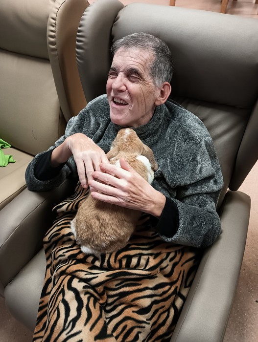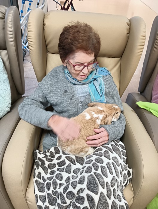 Visita de dos conills per part de la família Anguera per animar els residents.