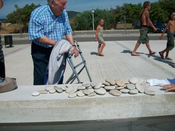 Ahir diumenge, alguns dels avis de L'Onada Alcanar van realitzar una sortida a la platja de Les Cases. Van anar a recollir pedres per poder fer després uns tallers de pintura que ha preparat la terapeuta ocupacional. Feia molt de solet i s'ho van passar molt bé.