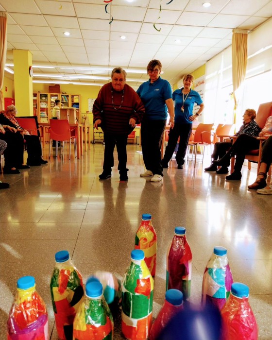 Esta mañana hemos disfrutado echando unas partidas a los bolos. Hemos trabajado movilidad, equilibrio y coordinación a través de este juego tan divertido.