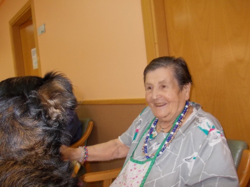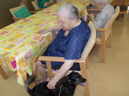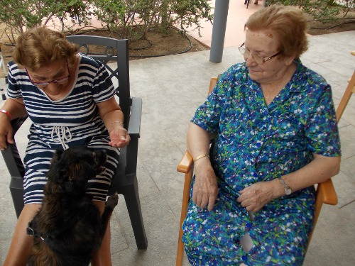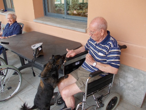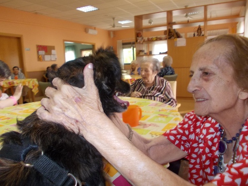 Després d'uns mesos de convalescència, la Nuka ha tornat a l'Onada Riudoms. Tots els residents han estat molt contents de veure-la!! Els residents han recordats els gossos que han tingut a casa, els seu nom, com eren...Altres residents han fet treballar a la Nuka de valent, fent-li fer mil i una piruetes, burdar, ballar...Aquesta gossa és tota una estrella!!