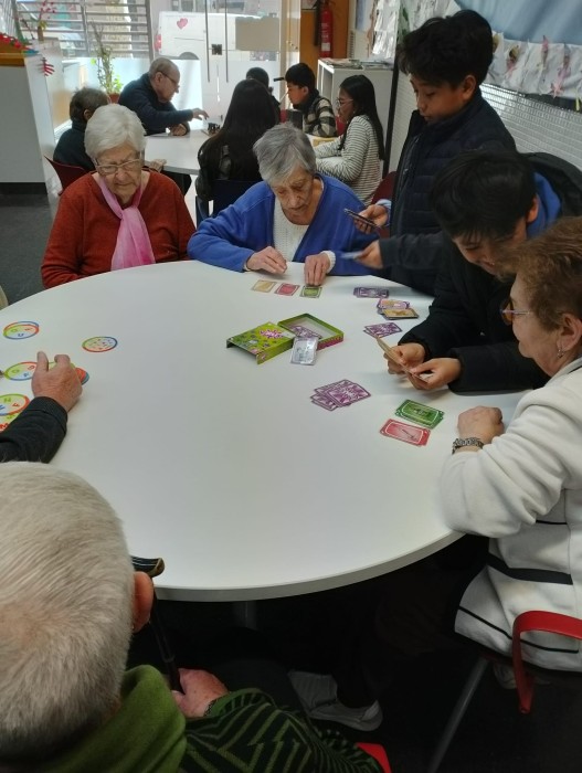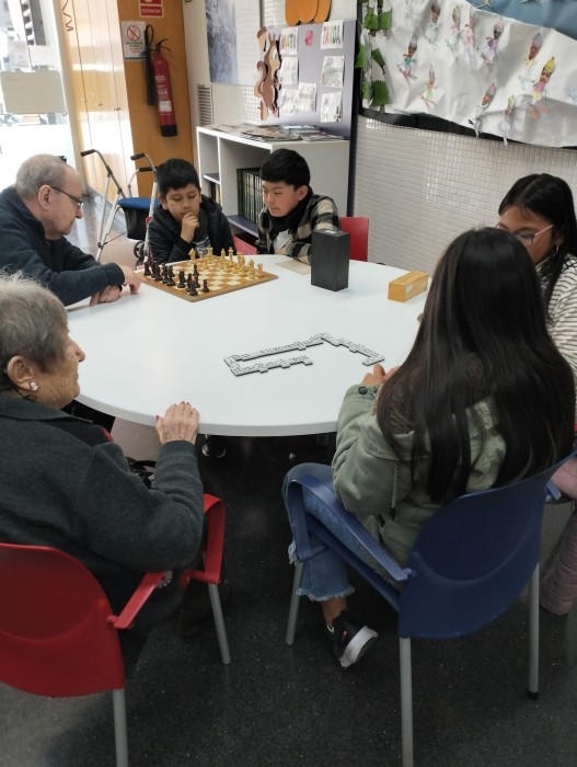 L'últim dijous de mes, els nens i nenes del col·legi, ens venen a visitar per poder estar amb els avis i jugar amb ells a diferents jocs de taula.