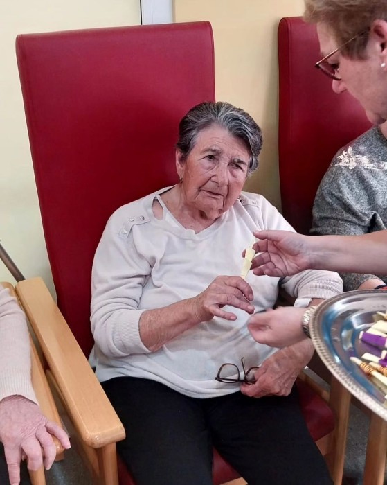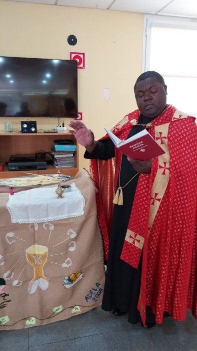 Hoy el padre Egide ha celebrado una misa muy especial y emotiva para bendecir las Palmas para el Domingo de Ramos.