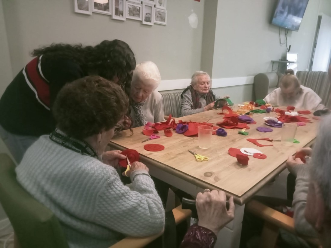 Durant les últimes setmanes hem començat a elaborar roses de Sant Jordi als tallers de manualitats, i ho hem fet amb la col·laboració de l'alumnat de 3r d'ESO de l'Institut Joan Guinjoan que fan el Servei Comunitari al nostre centre, així com amb el suport de les voluntàries de Caixabank.