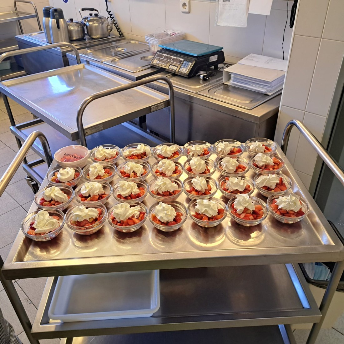 Aquesta setmana hem fet berenar especial i hem fet maduixes amb platan i nata, i lo millor de tot és que l'hem preparat nosaltres fent un taller de cuina! Hem gaudit molt d'aquest berenar!