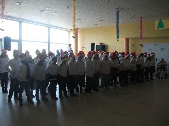 Els nens ens van cantar diverses cansons i fins i tot en angles, va ser molt bonic ja que eren uns 100 alumnes en total.