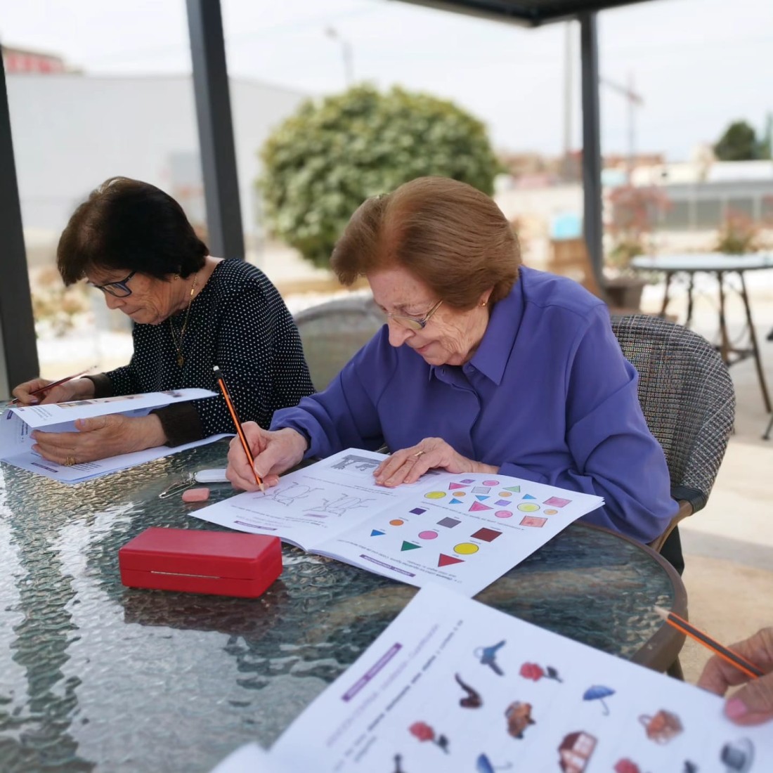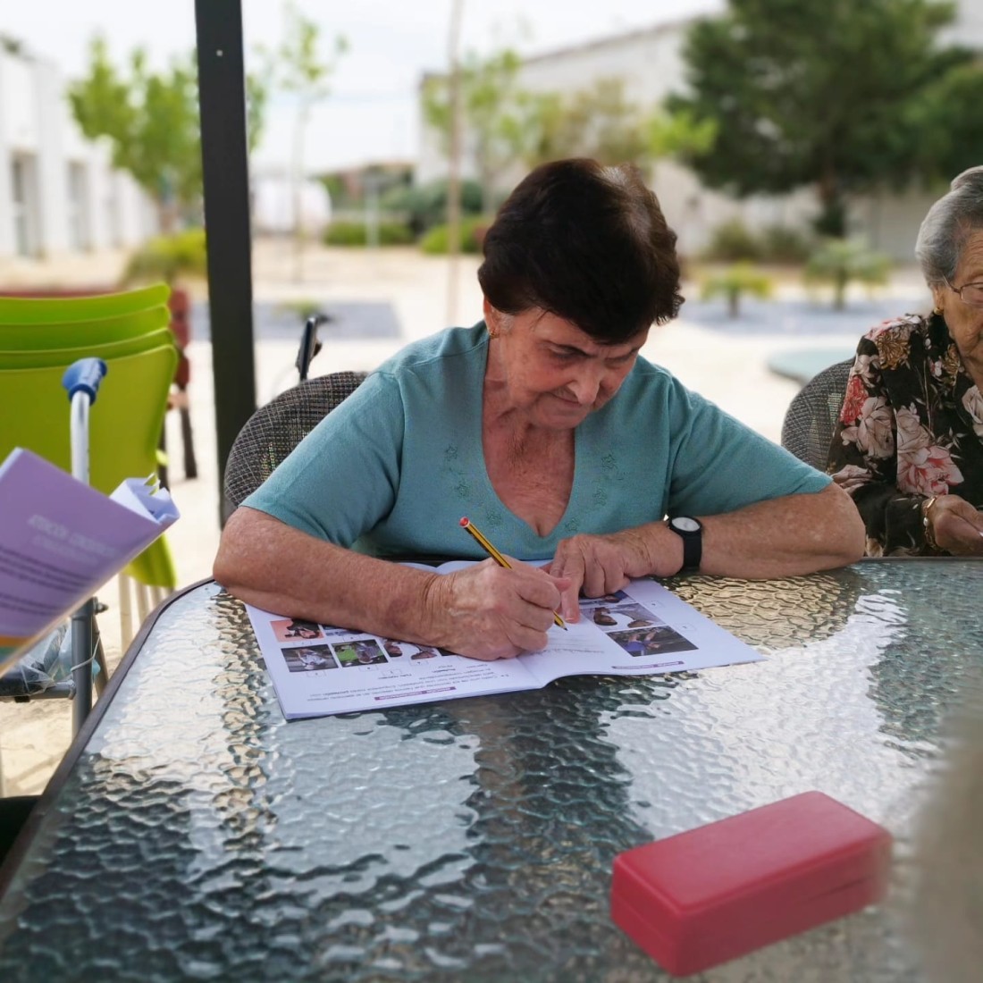 Continuem amb el projecte per a la potenciació de l'estimulació cognitiva i canviem d'ubicació. Aprofitant els espais a l'aire lliure del nostre centre, llum natural i tranquil•litat.