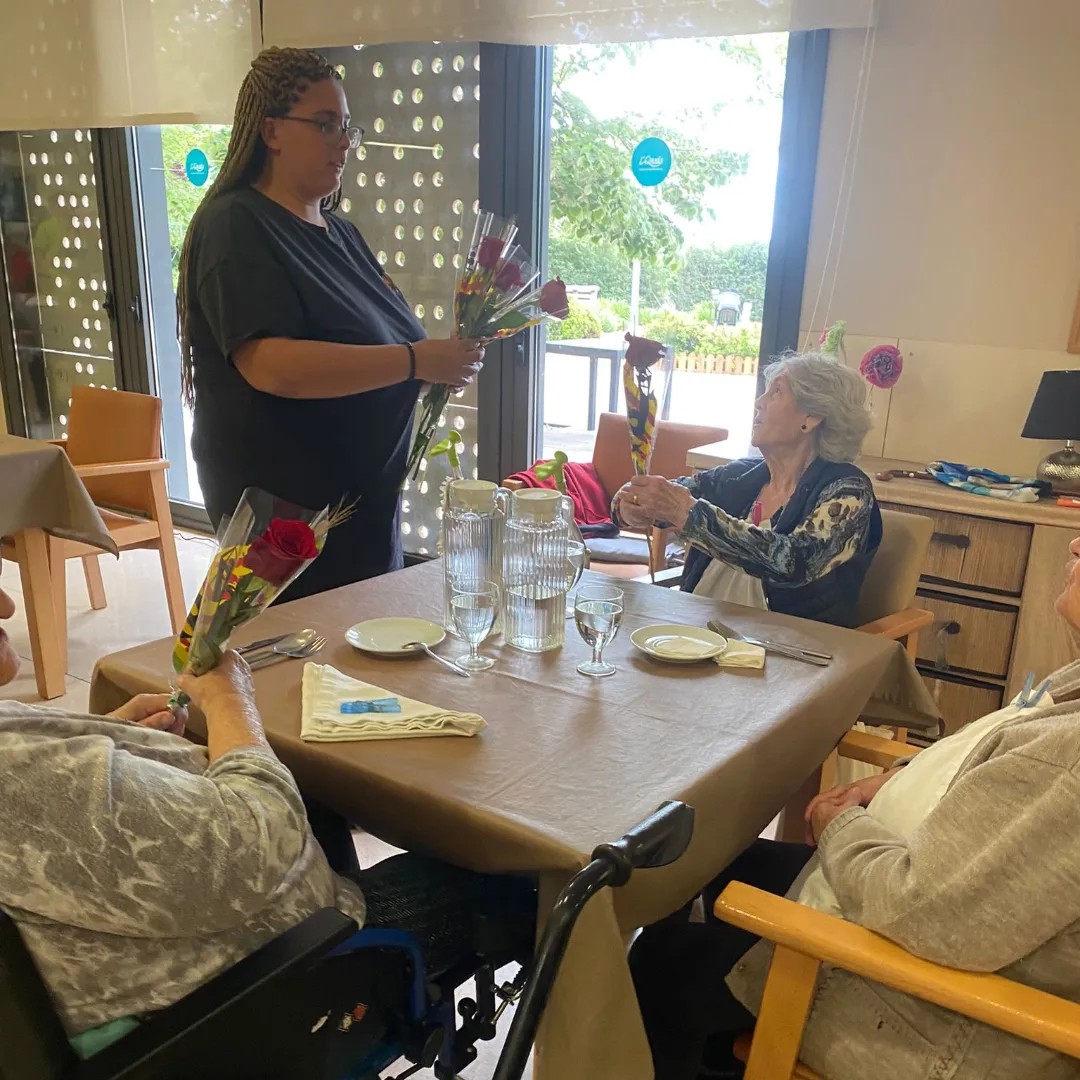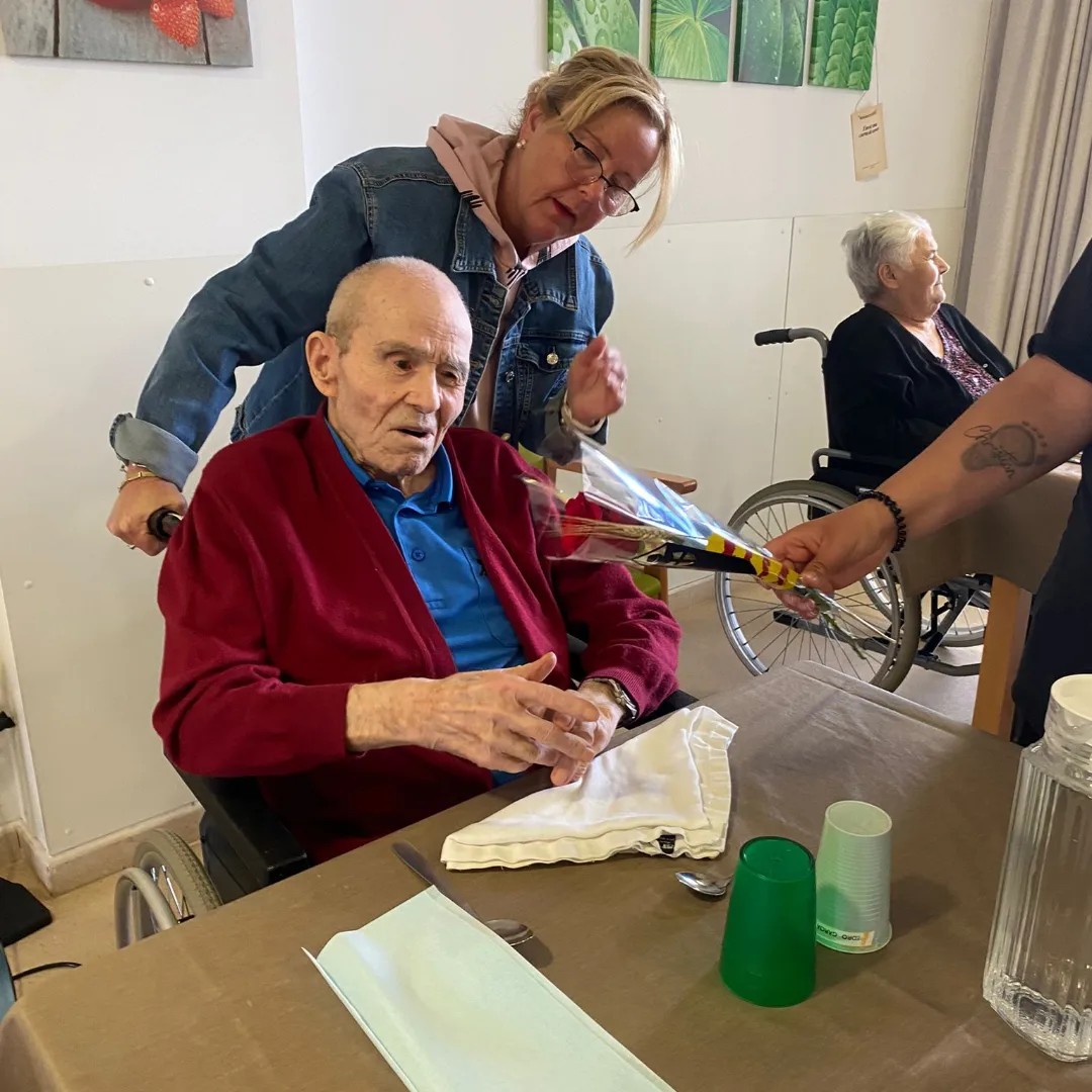 Els usuaris del taller ocupacional d'Ampans, ens han vingut a portar roses.