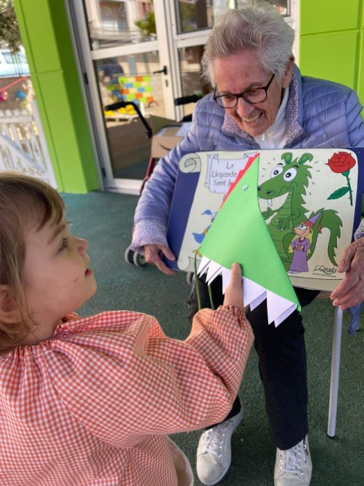 Amb les orelles ben obertes i la màxima atenció els hem explicat la llegenda de Sant Jordi ald més petits.