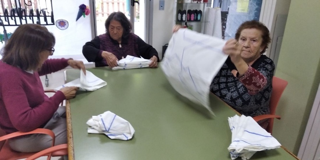 Trabajamos la autonomía y la movilidad a través de actividades vocacionales como doblar ropa.