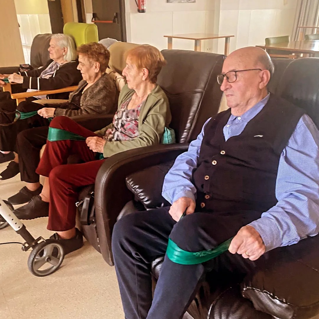 Mobilització de les extremitats inferiors amb la Marbel, la terapeuta ocupacional del centre.