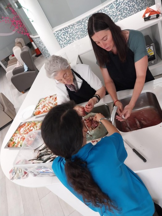 Vam netejar les sardines al centre, vam preparar la parrilla i, acompanyant-les amb una salseta d'all i julivert i una mica d'ensalda amb enciam i tomàquet... vam menjar millor que els reis i reines!