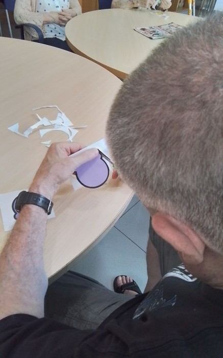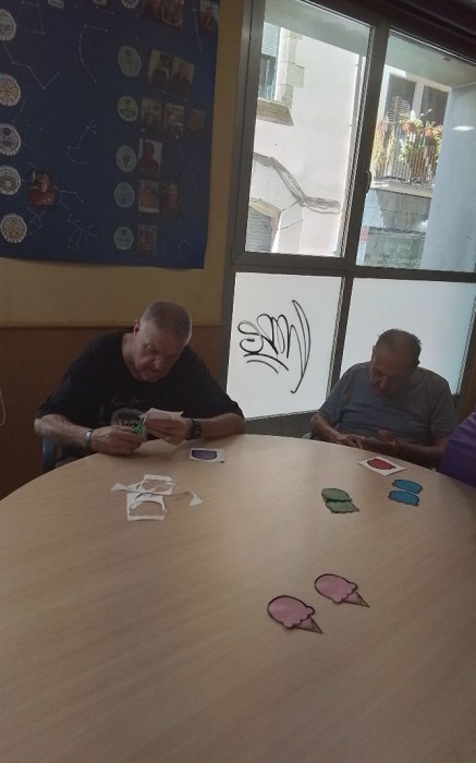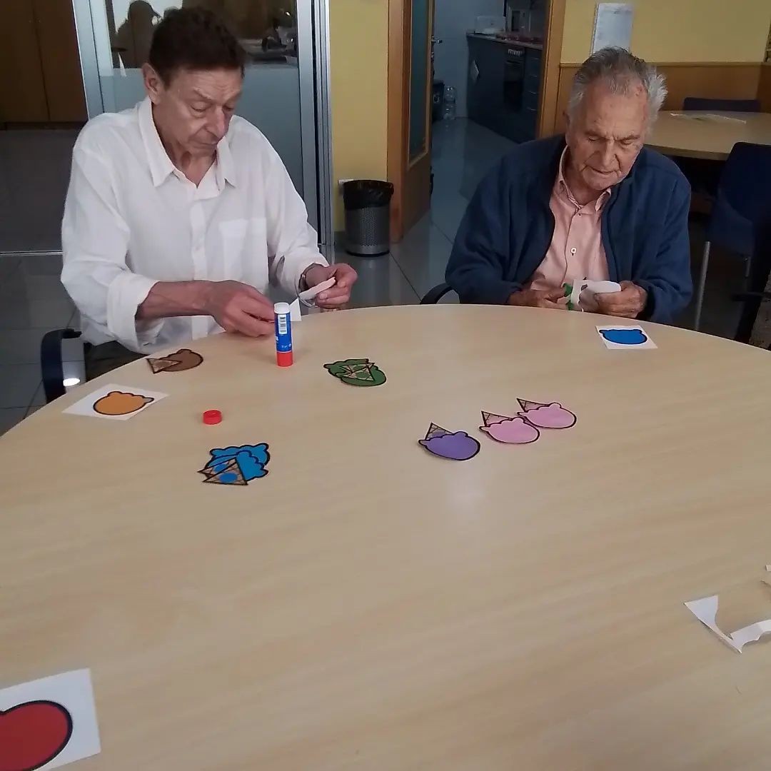 Treballem l'atenció i la psicomotricitat fina, alhora que preparem decoracions per al Centre de Dia.