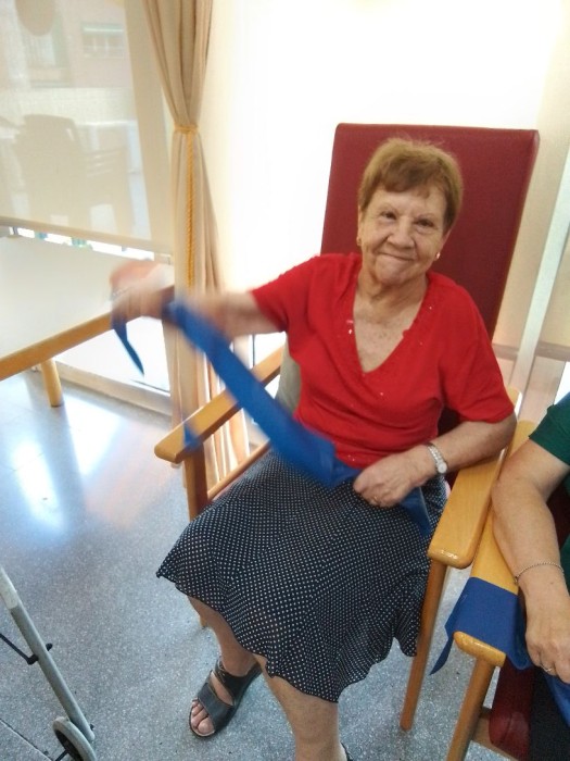 Introducimos un nuevo material a nuestra gimnasia. Theraband nos ayuda a fortalecer nuestras extremidades y movilidad!