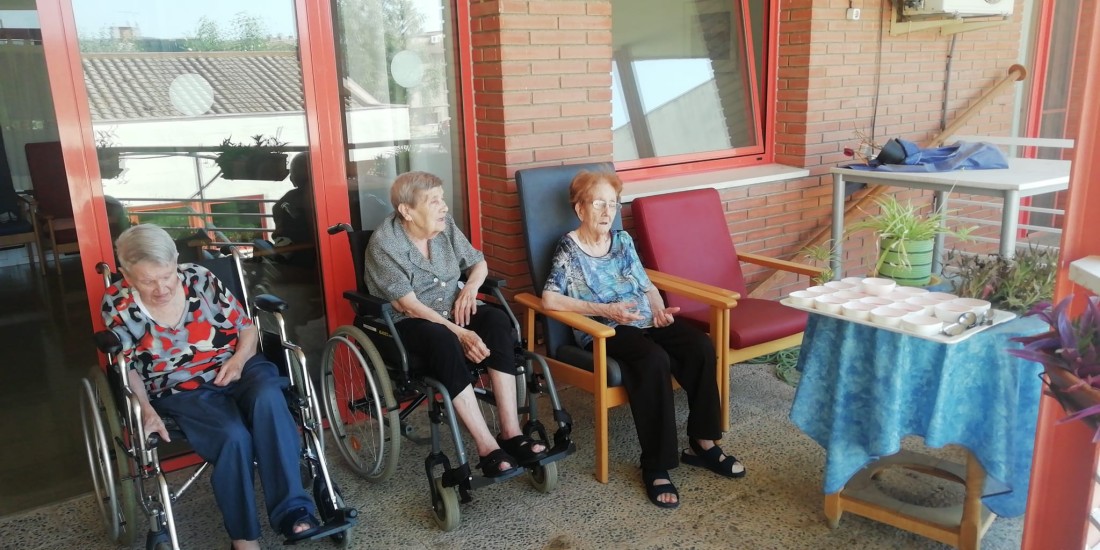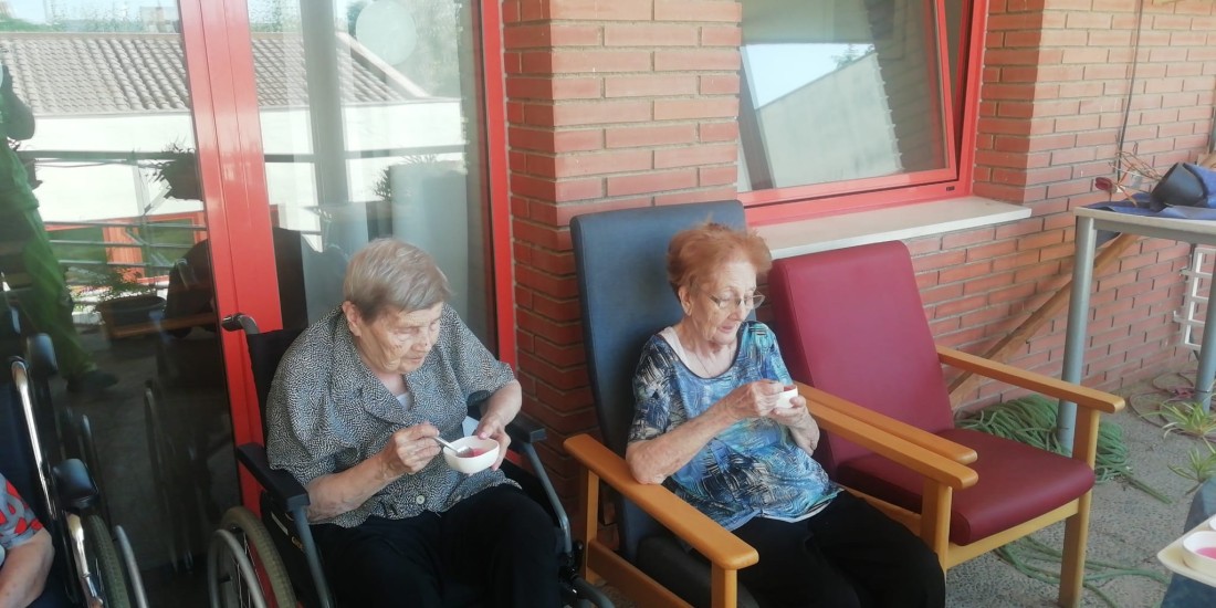 Avui hem menjat gelatina fresca a l'exterior per canviar una mica la rutina i estar una estona a fora a les hores de menys calor mentre mengem i escoltem música de fons! :)