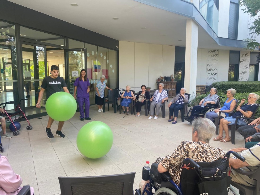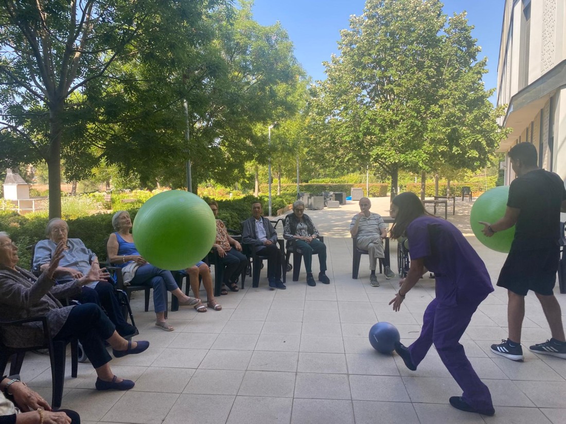 Divertida sessió de gimnàstica al jardí