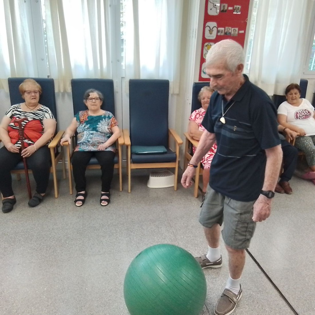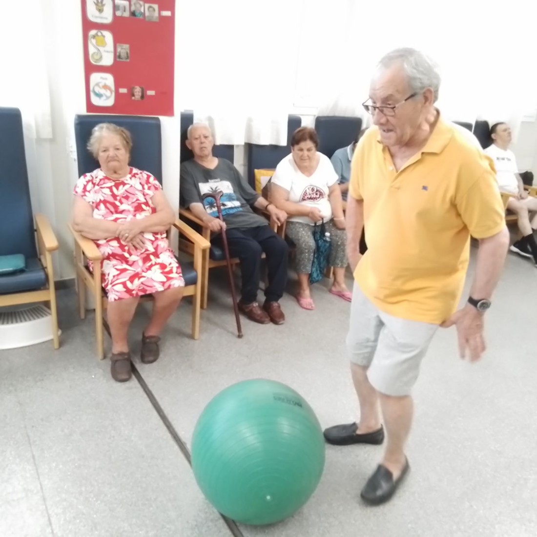 Jugando con la pelota para mejorar la flexibilidad.