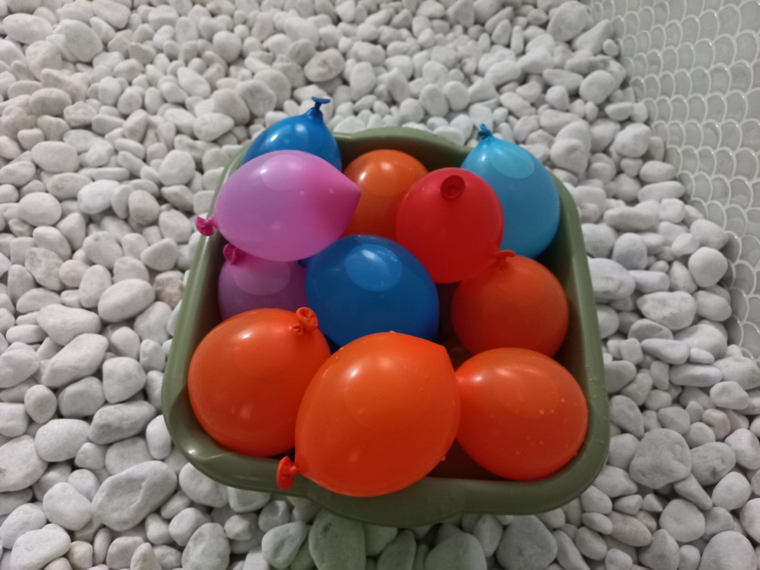 Aquest matí hem estat divertits amb els globos d'aigua. Hem treballat la punteria, entre rialla i rialla.