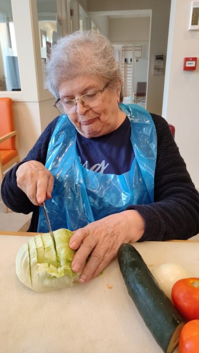 Hoy hemos realizado la preparación de un pastel mientras otros secan los cubiertos y otros la ensalada para comer