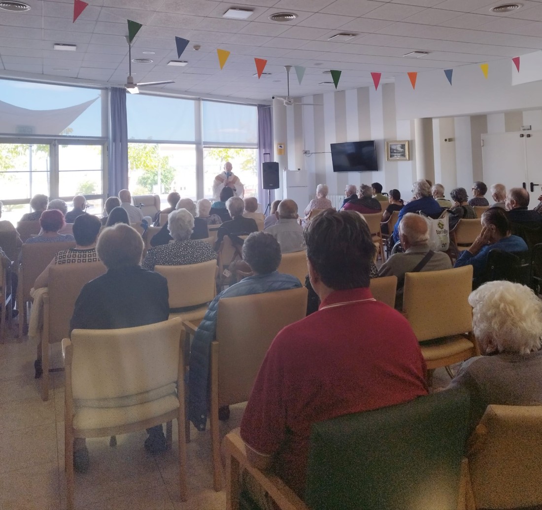 Aquest matí ha tingut lloc la misa mensual amb Mossèn Joan. Gràcies per acudir sempre, per a la majoria dels nostres residents aquest dia és molt esperat durant el mes, ja que hi tenen molta fe i moltes coses per els que demanar.