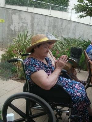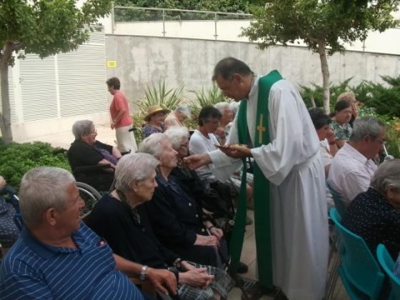 A la Residencià L'Onada Golden Beach van començar a celebrar la Missa al jardí, aprofitant l'ombra i la fresca que fa..., l'espai és molt relaxant : arbres , flors és un entorn perfecta per celebrar la Eucaristia.